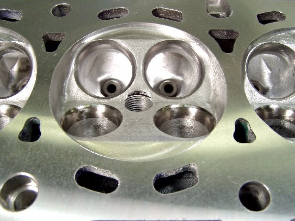 Note that the basic headwork package includes our famous valve seat preparation, full bowl porting / short-turn radius shaping, matching intake and exhaust port entries / exits, full combustion chamber rework, CCing, and milling to achieve customer's desired compression ratio. Note that the quench pads have been CNC-machined to match larger than stock bore diameter.